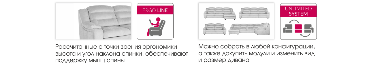 Денвер — синоним комфорта и респектабельности. Высокая мягкая спинка создаст комфортную поддержку всем отделам позвоночника и голове, что в сочетании с мягкой посадкой делают Денвер идеальным местом для отдыха. При разработке было уделено особое внимание комфорту сна, поэтому в диван интегрирован выкатной механизм нового поколения. Этот механизм позволяет раскладывать диван в двух положениях - режиме «релакс» для дневного отдыха и режиме «ночной сон». Важным аспектом модели является ее модульность, что позволит клиенту создавать различные варианты исполнения из модулей шириной 75 или 85 см, исходя из своих индивидуальных потребностей.