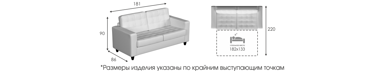 | Спальное место | 1820 x 1330 мм |