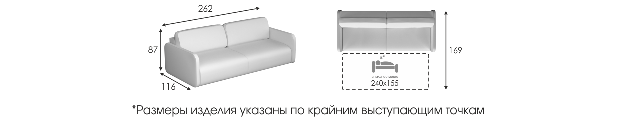 | Спальное место | 240 x 155 мсм |