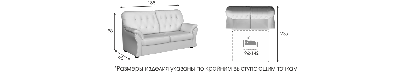 | Спальное место | 1960 x 1420 мм |