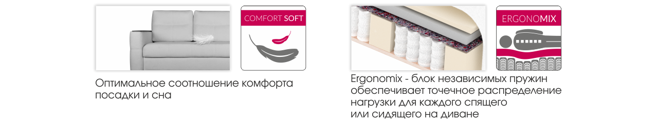 | Наполнение сидений | Система Ergonomix на базе независимого пружинного блока высотой 12 см |